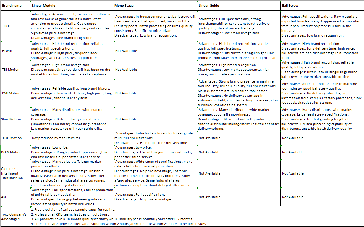 On our last composition we listed the top 10 standard presicion automation companies in China and this article provides an in-depth analysis of Toco's strengths and weaknesses, benchmarked against prominent brands from Japan, Taiwan, and mainland, including HIWIN, TBI Motion, PMI Motion, and others, to demonstrate why Toco is an increasingly ideal choice for discerning customers.